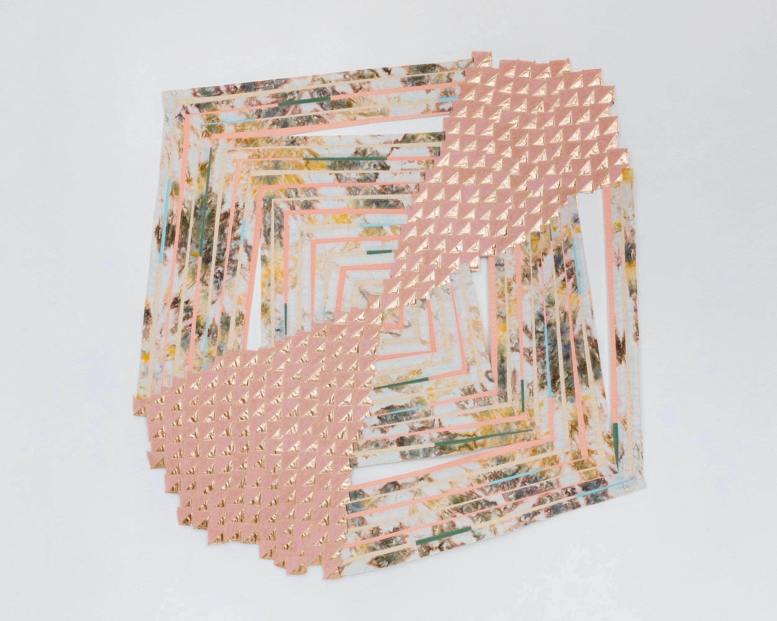 Regina Durante Jestrow expands the legacy of quilt-making into a contemporary, painterly field, where hand-dyed and sourced textiles are layered and stitched into compositions that balance intuition with formal rigor.
